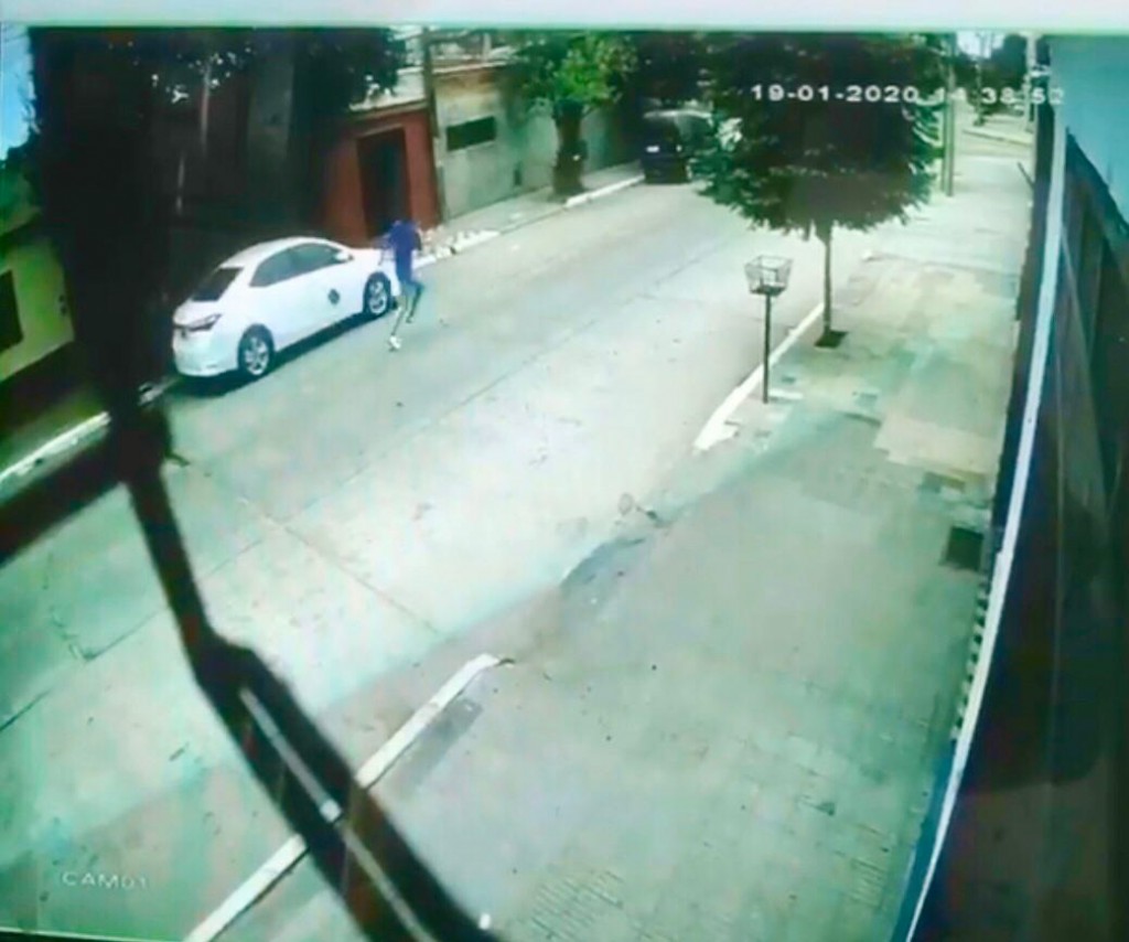 El auto se encontraba estacionado en la puerta de su domicilio personal. La agresión inexplicable de acuerdo a lo que se ve en las imágenes de los videos, el joven pasa corriendo y arroja el elemento contundente a un lateral del vehículo, que según su propietario lo deberá tener tres días en reparación. Esta contingencia maliciosa perjudica su labor ya que debe trasladarse para sus actividades profesionales. Además el kinesiólogo tiene un bebé prematuro que debe llevar a San Miguel con frecuencia para controles.