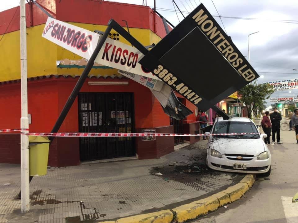 CHOCÓ , SUBIÓ LA VEREDA Y DERRUMBÓ UNA PANTALLA GIGANTE LED EN ESQUINA COLON Y ALBERDI EN MONTEROS