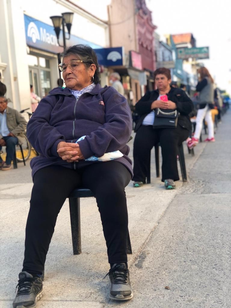 De acuerdo a las nuevas medidas que se tomaron por el desborde de ayer viernes. Las filas para acceder al banco hoy sábado son mucho más mesuradas. Los abuelos tienen sillas para esperar su turno.