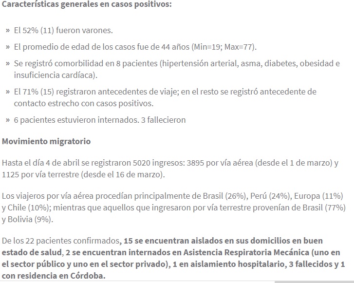 Se registraron 2 nuevas muertes. Dos hombres, uno de 72 años residente en la provincia de Buenos Aires y otro de 66 años residente en la provincia de Córdoba. Al momento la cantidad de personas fallecidas es 46.