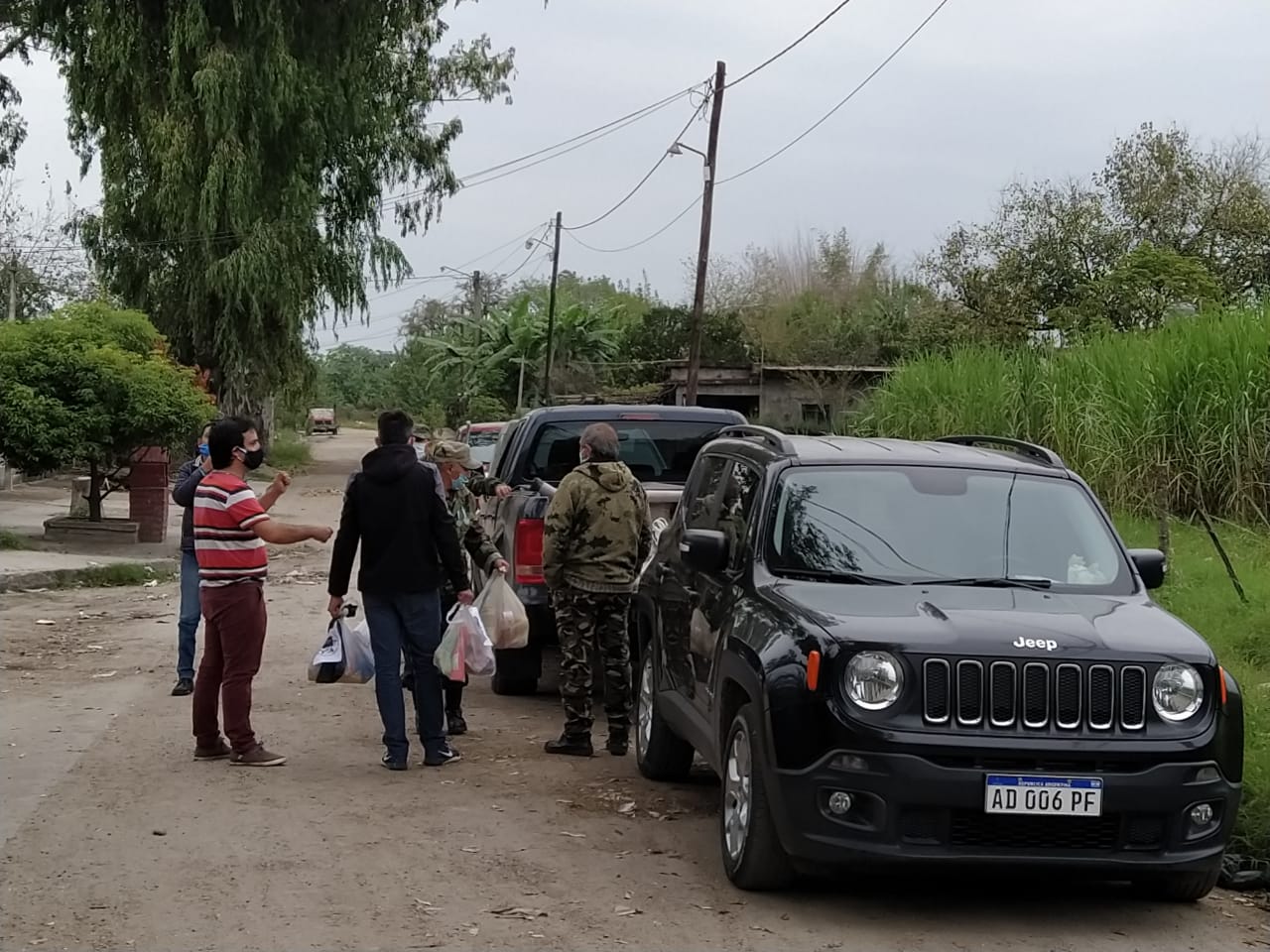 Se entregaron el sábado 100 cajas alimentarias, 400 unidades de indumentaria. Contaron con el apoyo de voluntarios para la distribución.