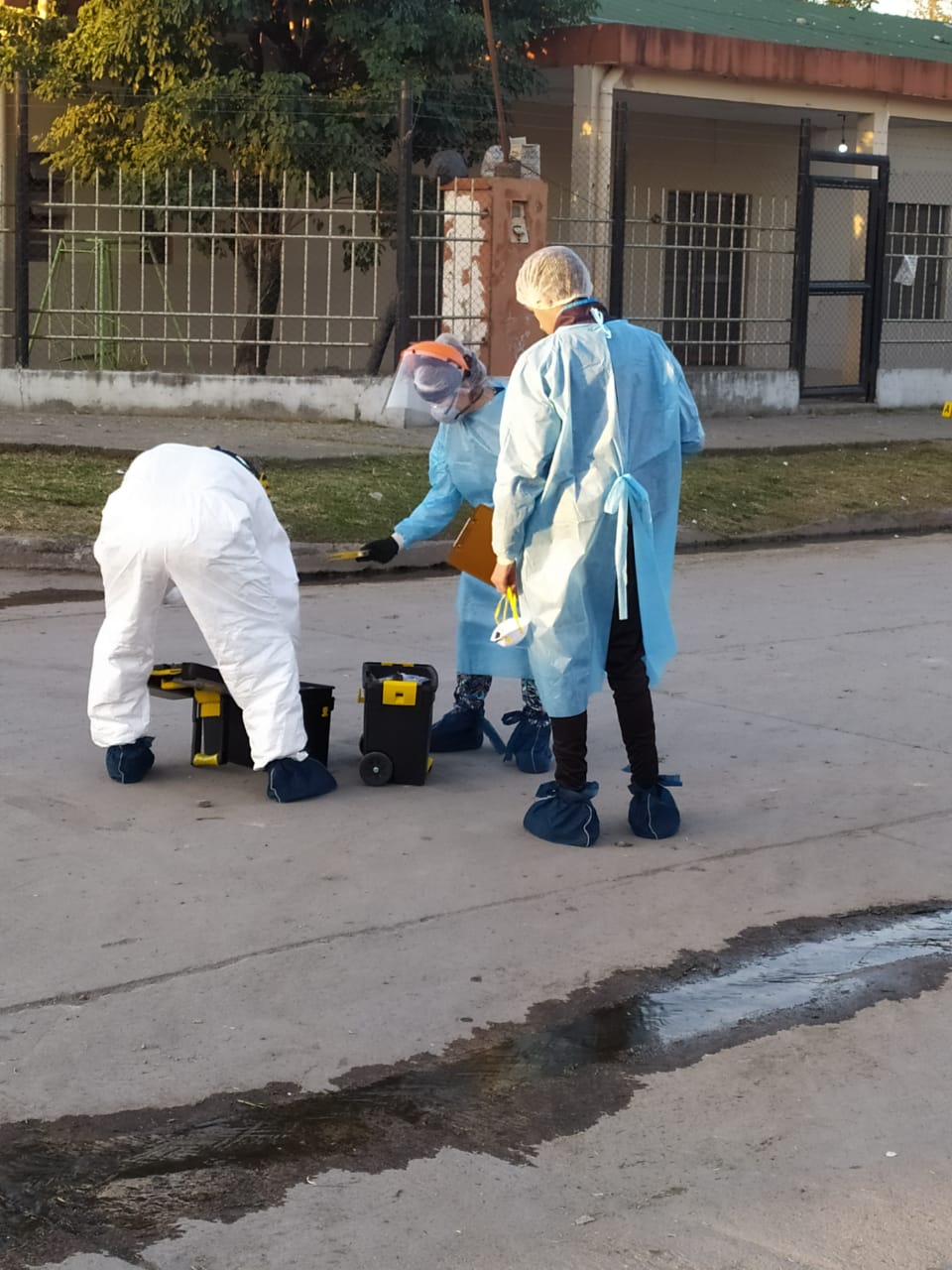 Paralelamente, la Fiscal solicitó la intervención del Equipo Científico de Investigaciones Fiscales (ECIF) del Ministerio Fiscal para realizar las diferentes pericias y otras acciones vinculadas a la pesquisa en la escena del sangriento suceso. Por parte de la Policía actuó la División Homicidios y la Comisaría 6ta.