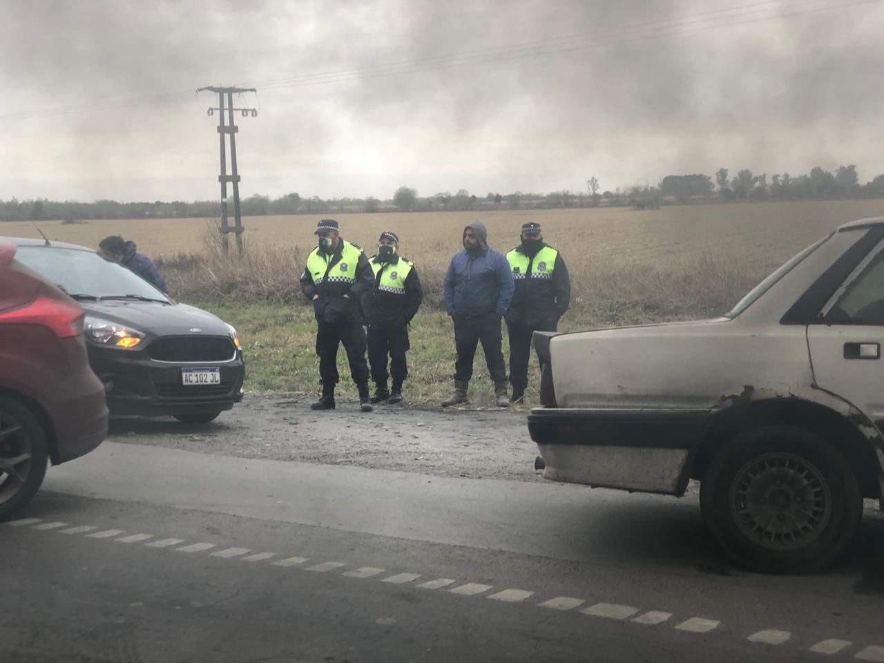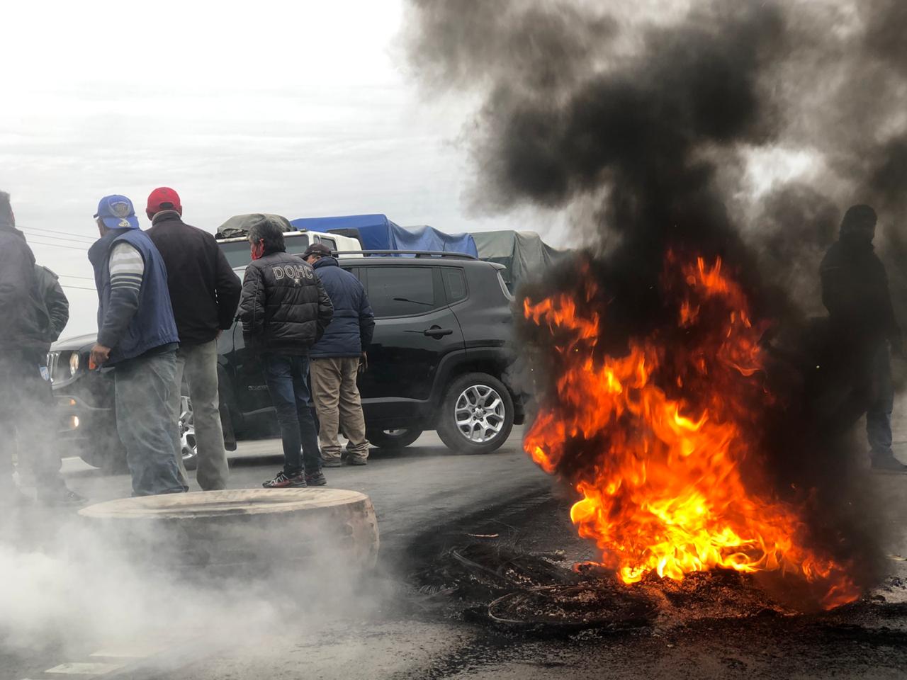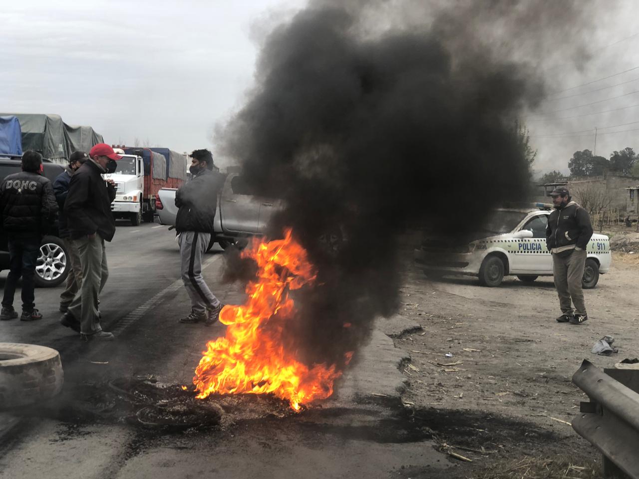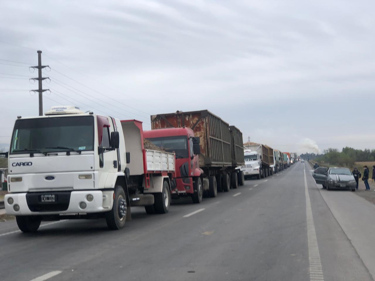 En el corte se encontraba apostada la Policía local, garantizando que dicha manifestación sea pacifica, ya que muchos camioneros que estaban varados a la vera de la ruta reclamaban el libre tránsito.
