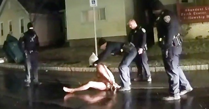 En el video puede verse que Prude iba desnudo por la calle y bajo la lluvia cuando es detenido por el grupo de policías.
