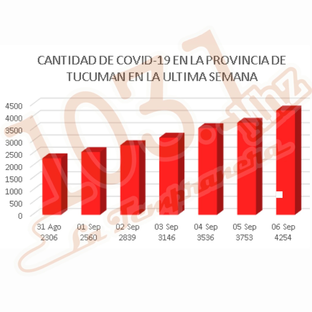 El total de pacientes a nivel provincial al día domingo 6 de setiembre nos da una cifra de 4254, y en semana solamente se sumaron 1948 nuevos casos. Convirtiéndose está en la cifra record de registro desde el comienzo de la pandemia.