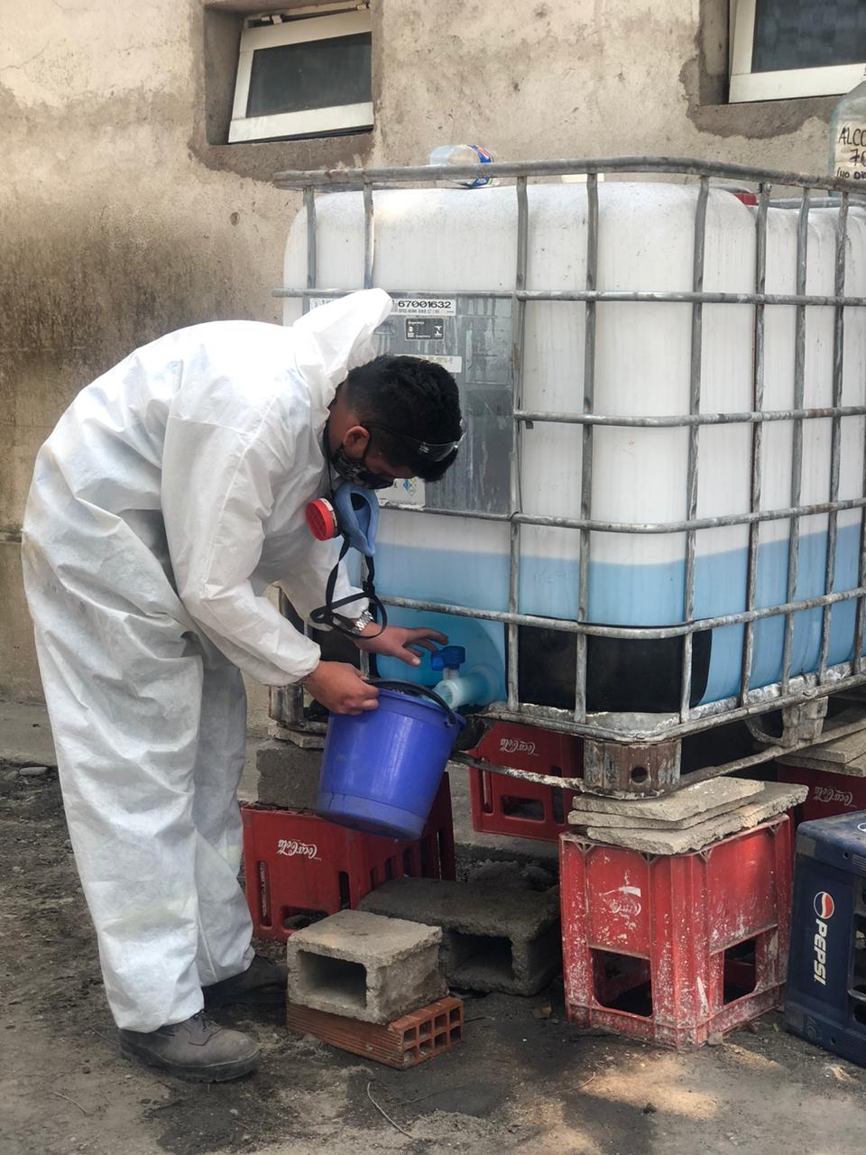 El trabajo incluirá un camión que lanzará en forma aérea para tratar de mitigar la limpieza de bacterias y los chicos que componen el equipo de fumigadores harán las respectivas limpiezas manuales en todas las áreas de la calle.