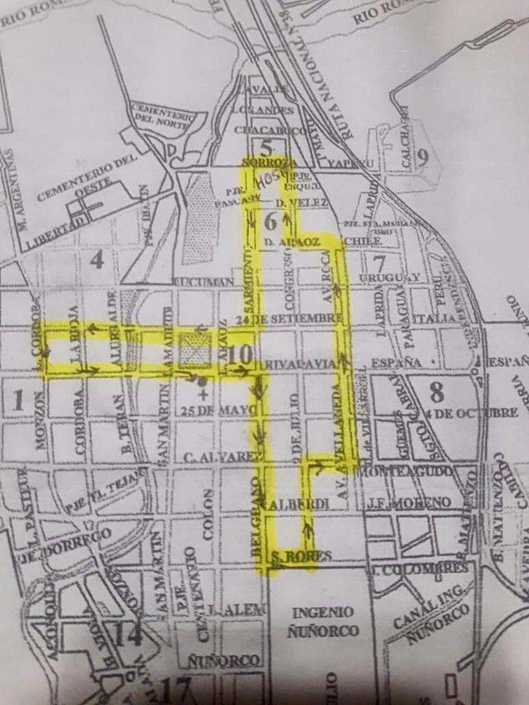 - Por Belgrano hasta Silvano Bores y por ésta hasta 9 de Julio (Ingenio Ñuñorco)