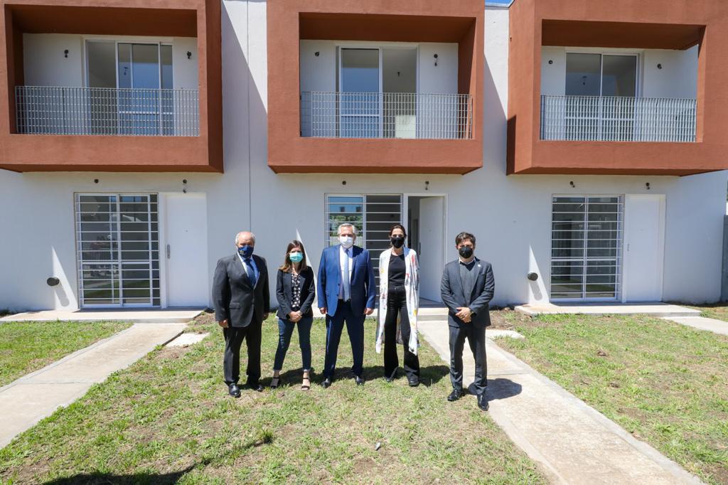 El presidente Alberto Fernández encabezó este mediodía, desde el partido bonaerense de Ezeiza, la entrega de viviendas para familias de ese municipio y de la provincia de Río Negro, en el marco del plan Procrear, y anunció la finalización de otras 92 unidades habitacionales para Florencio Varela.