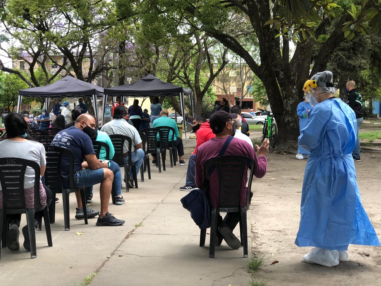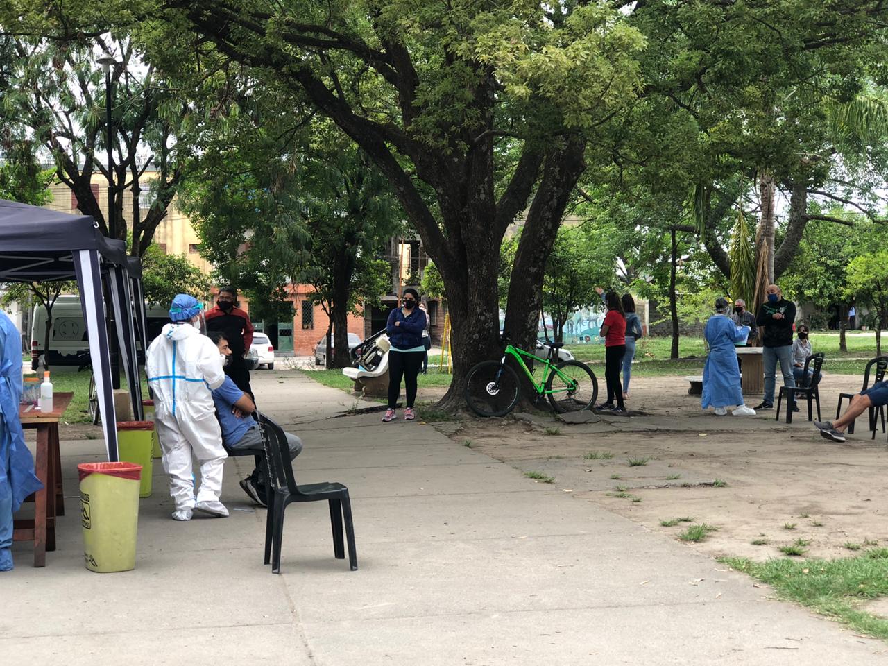 La población concurrió a la plaza tomando todas las medidas de prevención y se realizaron hisopados a personas que sentían algún tipo de síntoma.