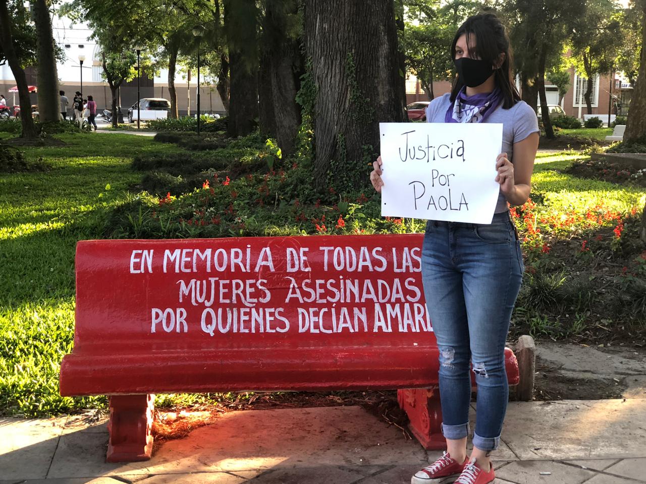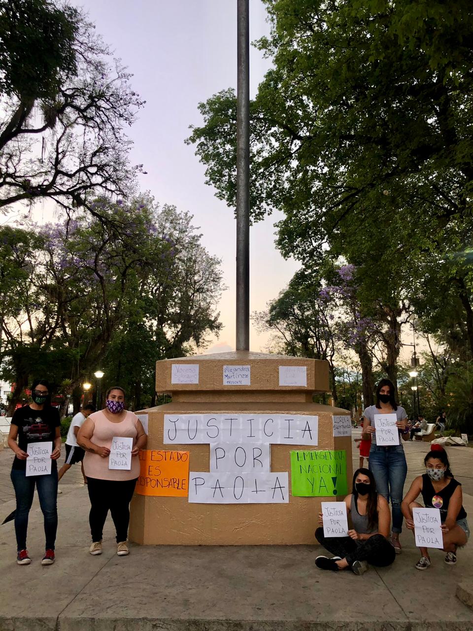 Tucumán seria la provincia con más femicidios en el mes de octubre. Por esta razón y para visibilizar el pedido de justicia por Paola Tacacho y otras victimas La Fundación Sororidad Activa coloco en el mástil y en los bancos de la Plaza Monteriza carteles llamando a la reflexión y a una emergencia nacional.