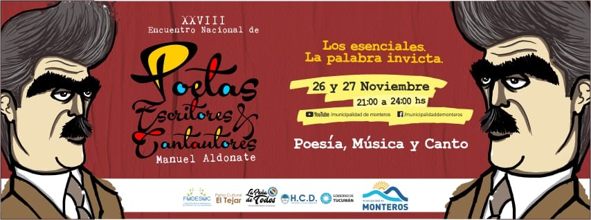 Una nueva edición del encuentro de poetas se realizará los días 26 y 27 de noviembre en los horarios de 21 hs a 24hs a través de las plataformas de you tube y facebook de la Municipalidad de Monteros.