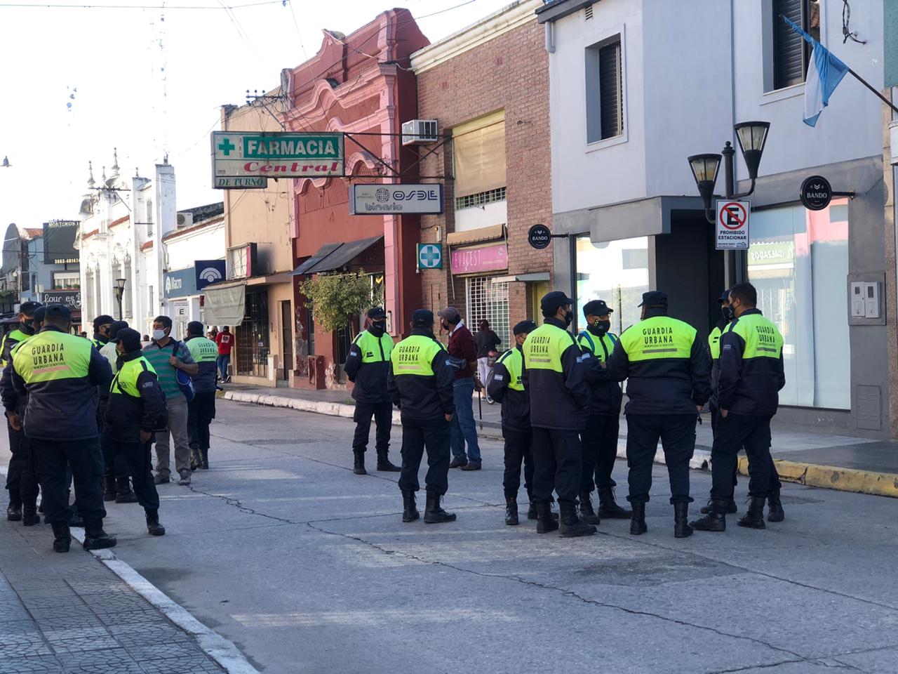 En la mañana de hoy la guardia urbana municipal se manifestó frente al edificio municipal para reclamar estabilidad laboral y el reintegro de su director al puesto de trabajo.