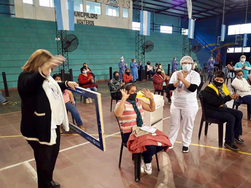 Con lágrimas de emoción, abrazos, baile y gritos fuel festejo de todo el equipo que trabajó sin parar doce horas este sábado en el Polideportivo para llegar a la meta que habían recibido desde el Ministerio de Salud de vacunar a la mayor cantidad de población, dentro de la franja etaria de 45 a 50.