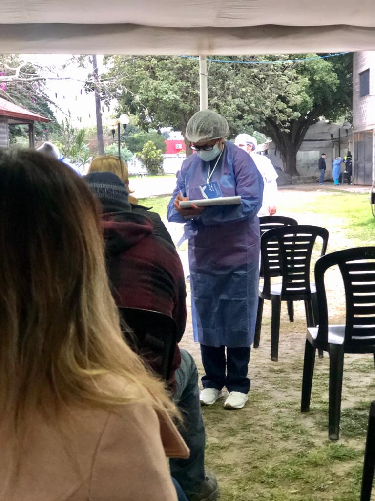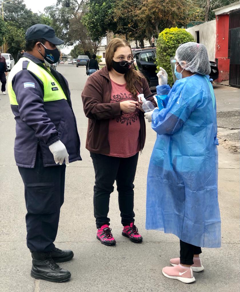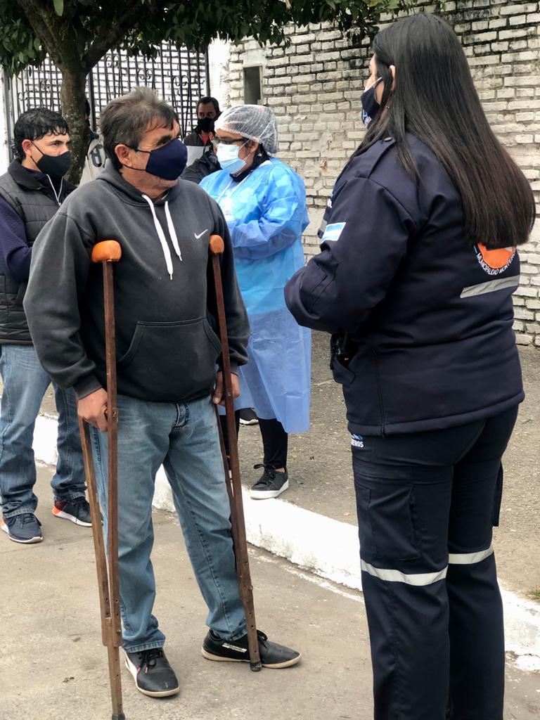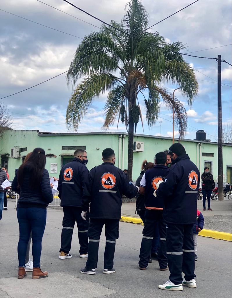 El grupo de Defensa Civil haciendo el apoyo a los agentes sanitarios municipales, recibiendo consultas, derivando y organizando.