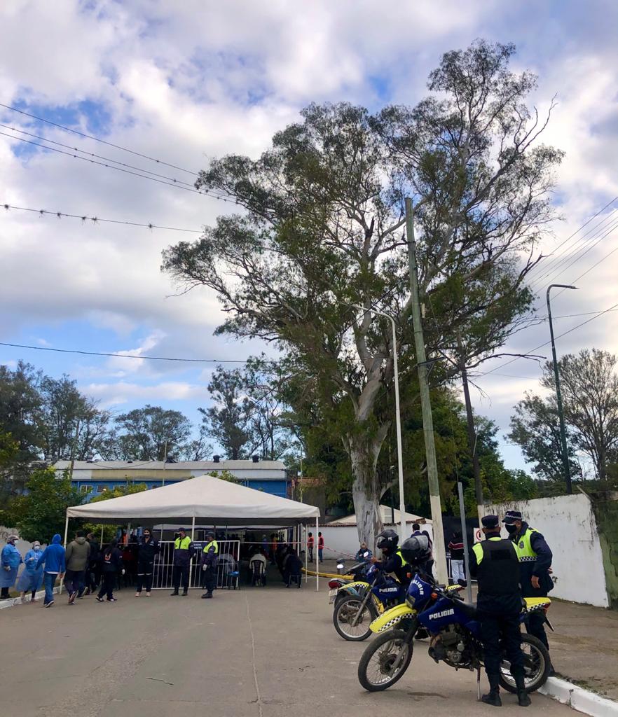 La Patrulla Motorizada y los agentes policiales, en las cercanías para garantizar la seguridad, con su seriedad estoica ahí están en todo el operativo.