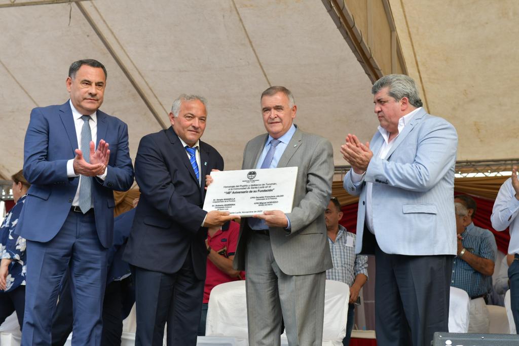 El gobernador, Osvaldo Jaldo, visitó este lunes, la comuna de Santa Lucía, en donde participó de los actos por el festejo de 140 aniversario de su fundación.