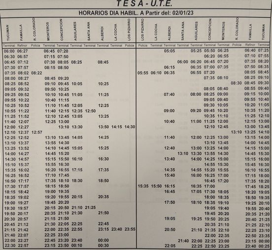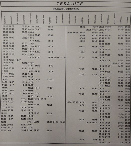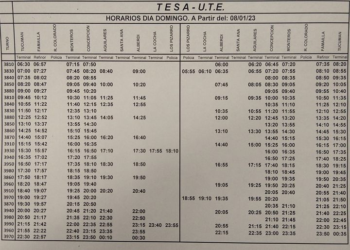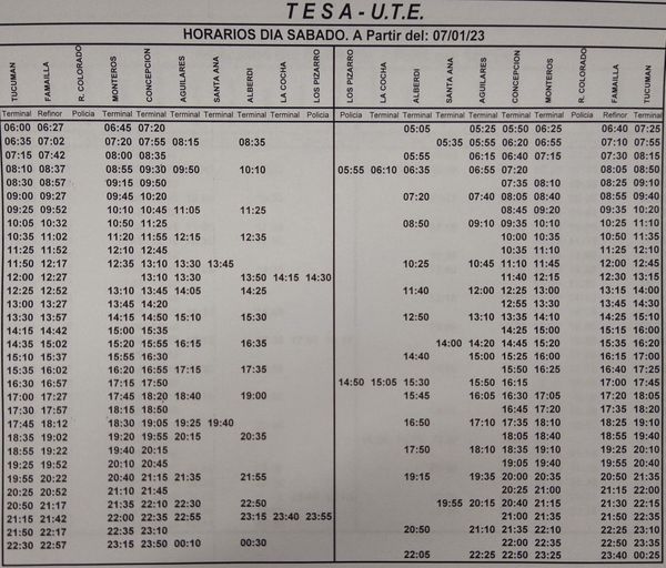 TESA, que hace el recorrido desde San Miguel de Tucumán, hacia Monteros y a distintas ciudades del sur de la provincia, modificó sus horarios habituales desde el 2-01-2023.
