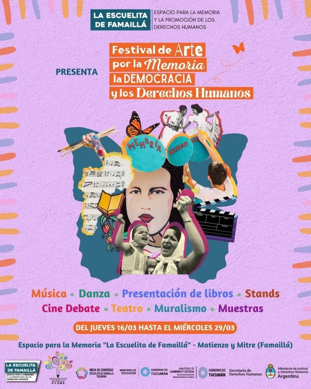 El Espacio para la Memoria "La Escuelita de Famaillá" y el Centro Educativo "Ana María Sosa" invitan a la comunidad en general al "Festival de Arte por la Memoria, la Democracia y los Derechos Humanos" que se está llevando a cabo desde el jueves 16 hasta el miércoles 29 de marzo.