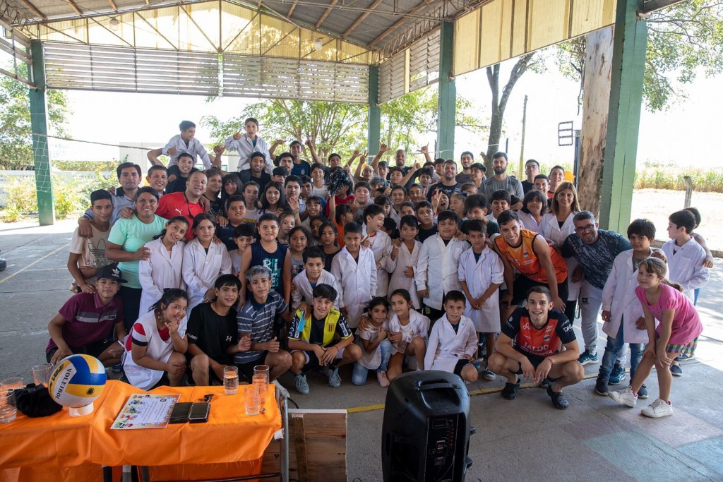 Durante cinco días, el plantel “Naranja” visitó las escuelas Dionisio Campos (Yonopongo), Joaquín Castellanos (Los Sosa), Mariano Ariza (Capitán Cáceres), Francisca Bazán de Laguna (Sargento Moya), N° 119 Provincia de Mendoza (Monteros) y N° 14 1° de Mayo (Amberes), para brindar charlas y hacer que más de 500 alumnos aprendan, se diviertan y se familiaricen con el vóley.