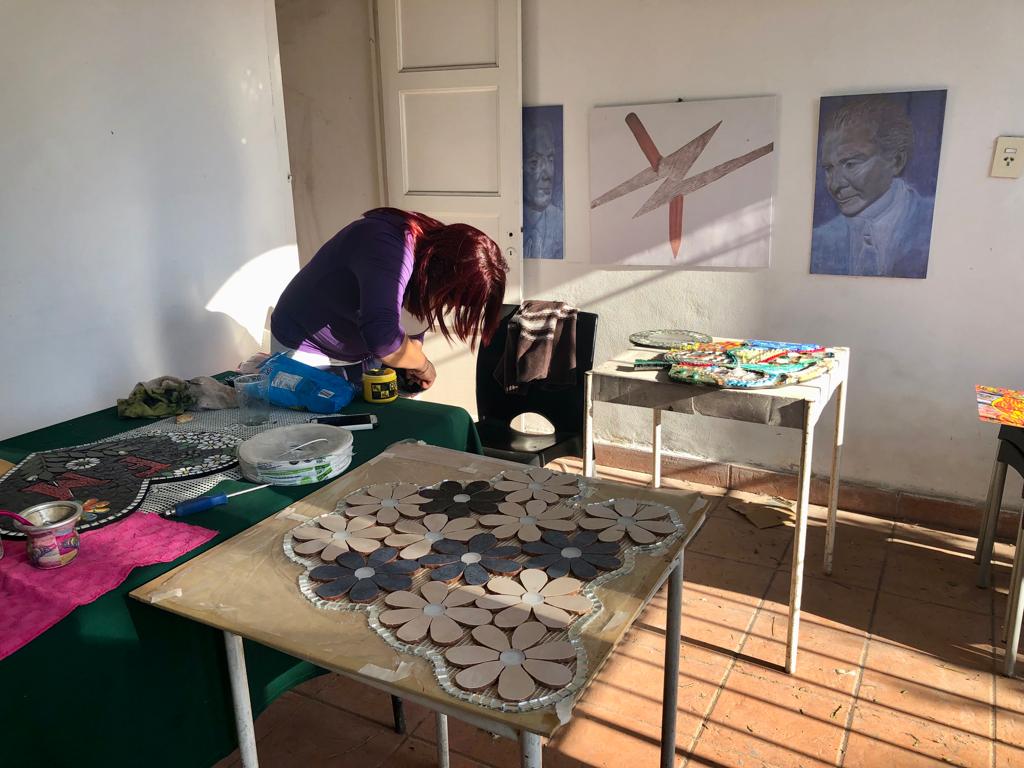 A partir de contar con un espacio físico, se dictaron talleres de pintura y dibujo cuando aún se estaban realizando trabajos de reacondicionamiento y reciclado de la flamante Casa de la Cultura de Rodolfo Bulacio.