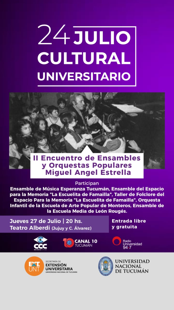 De esta forma por segundo año consecutivo, dentro del marco del 24 Julio Cultural, distintas formaciones interpretarán un repertorio de música popular poniendo en valor la cultura popular y, así mismo, homenajeando la actividad artística y militante que desempeñó por los derechos humanos el músico tucumano Miguel Ángel Estrella.