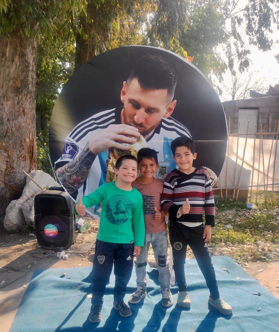 Un stand con la foto de Messi fue lo mas buscado por los chicos, nadie quería quedarse sin su recuerdo con el astro futbolístico.