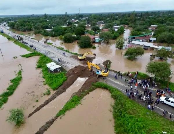 El pasado miércoles 11 de marzo, los técnicos del Ministerio de Obras, Infraestructura y Transporte Público resolvieron abrir la calzada para facilitar el drenaje del agua estancada. Dos retroexcavadoras de la Dirección Provincial de Vialidad trabajaron en el lugar, para romper la calzada de la Ruta 157 con el objetivo de que así comience a escurrir el agua acumulada en el casco céntrico de la localidad de La Madrid.