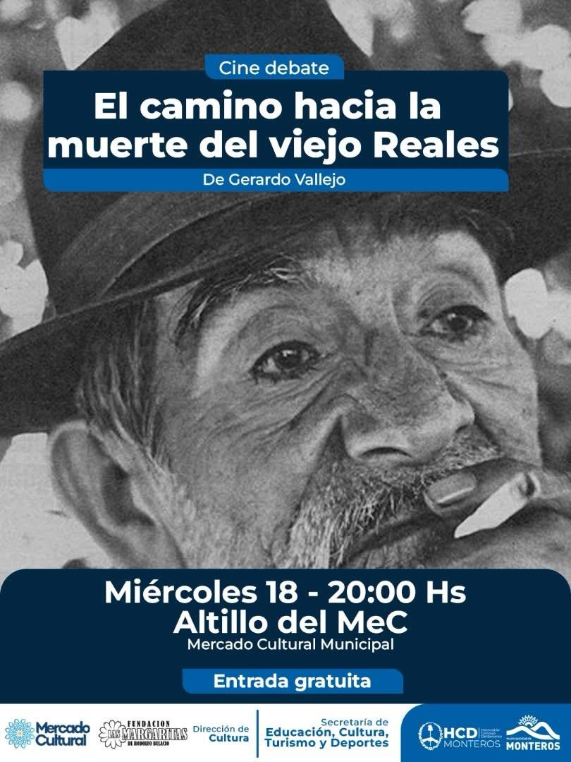 En el Mercado Cultural Municipal, se presenta este miércoles 18 de marzo " El camino hacia la muerte del viejo Reales" 1974, un film de Gerardo Vallejo. Un testimonio descarnado sobre el sometimiento de los trabajadores tucumanos, Gerardo Ramos Reales, del pago de San José, Acheral, cuenta su vida y la de sus tres hijos a fines de la década de los 60. Con entrada libre y gratuita te invitamos a las 20hs en calles Colon y Silvano Bores, Monteros