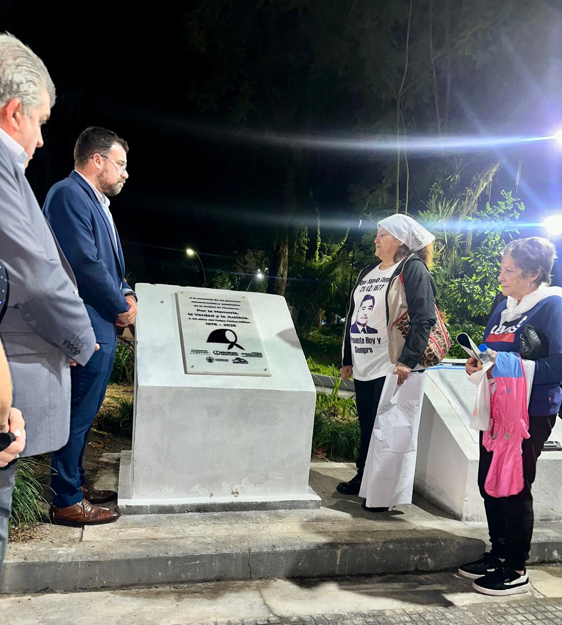 Cerca del mástil, los familiares de desaparecidos, acompañados por el Legislador Francisco Serra, el Intendente Francisco Serra (h), concejales y vecinos que siempre marchan y apoyan la causa, descubrieron dos placas y depositaron una ofrenda floral. Finalmente marcharon alrededor de plaza Bernabé Aráoz.