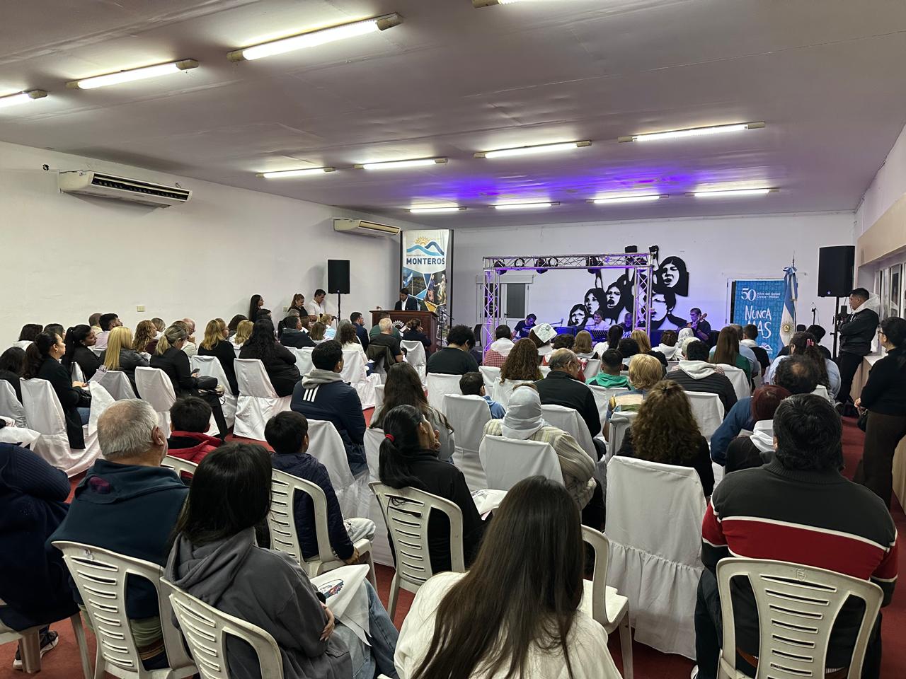 En un clima de mucha emoción se vivió la espera al día mas oscuro de la historia de nuestro país. El acto que generalmente se realiza en la plaza Bernabé Aráoz, por razones climáticas fue trasladado al Salón de las Mujeres Monterizas. Con una concurrencia numerosa, se escucharon las palabras de nietos de desaparecidos, que en la actualidad llevan el ejercicio de hacer memoria.