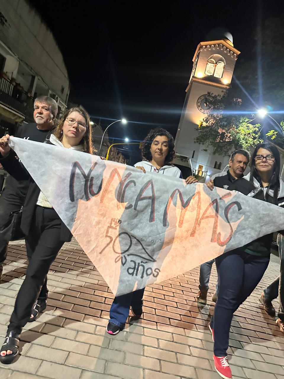 Desde las 21:30 hs del lunes 23 de marzo, se dio inicio a la vigilia, por la memoria, la verdad y la justicia, a 50 años del último golpe cívico militar en la Argentina. Se sucedieron artistas locales y testimonios de familiares de desaparecidos.