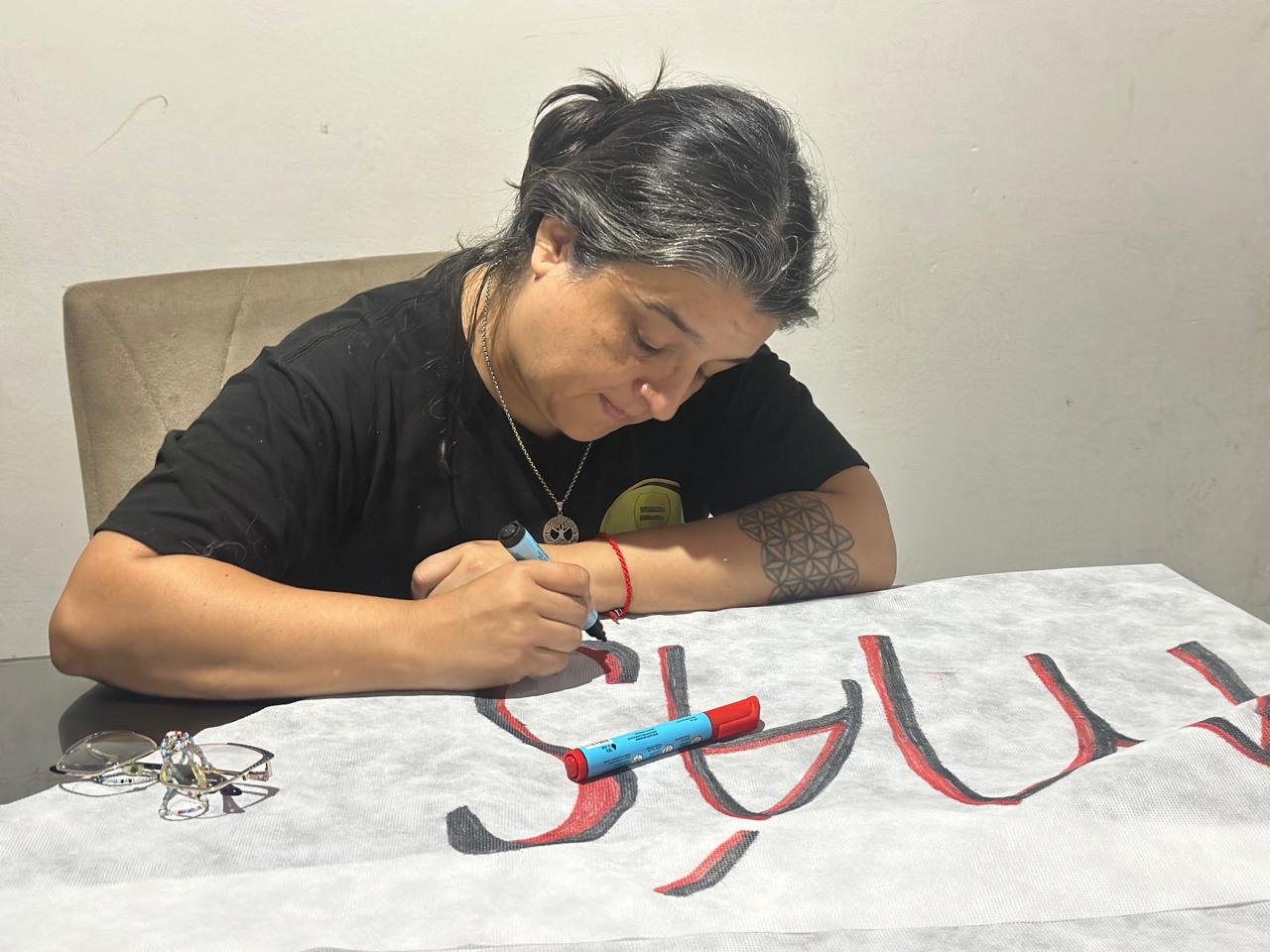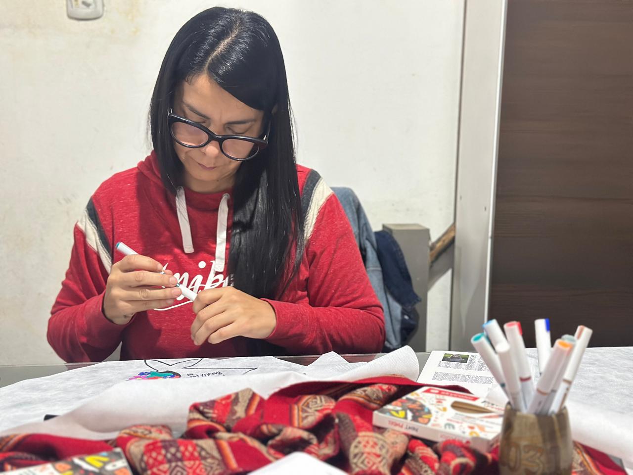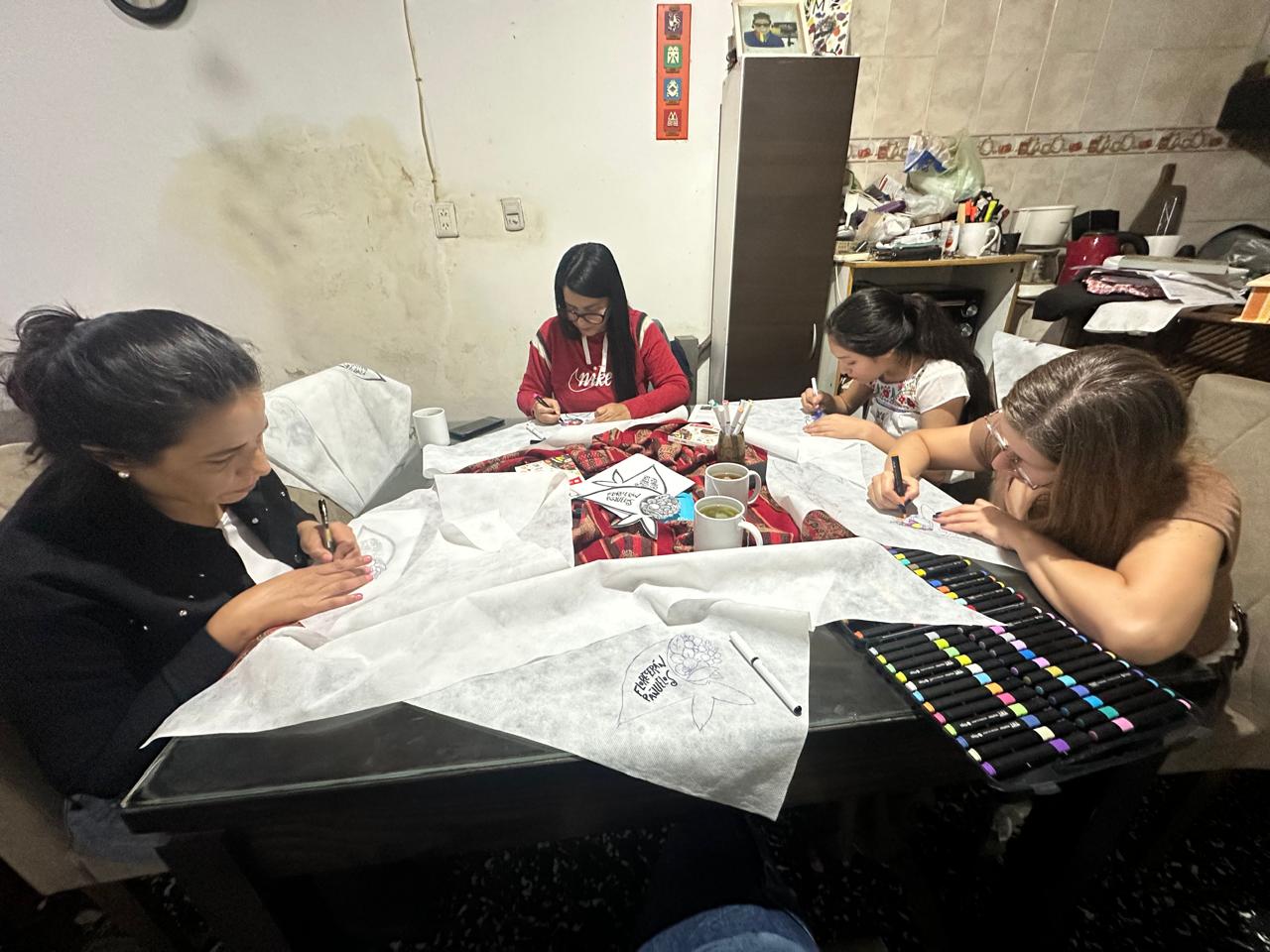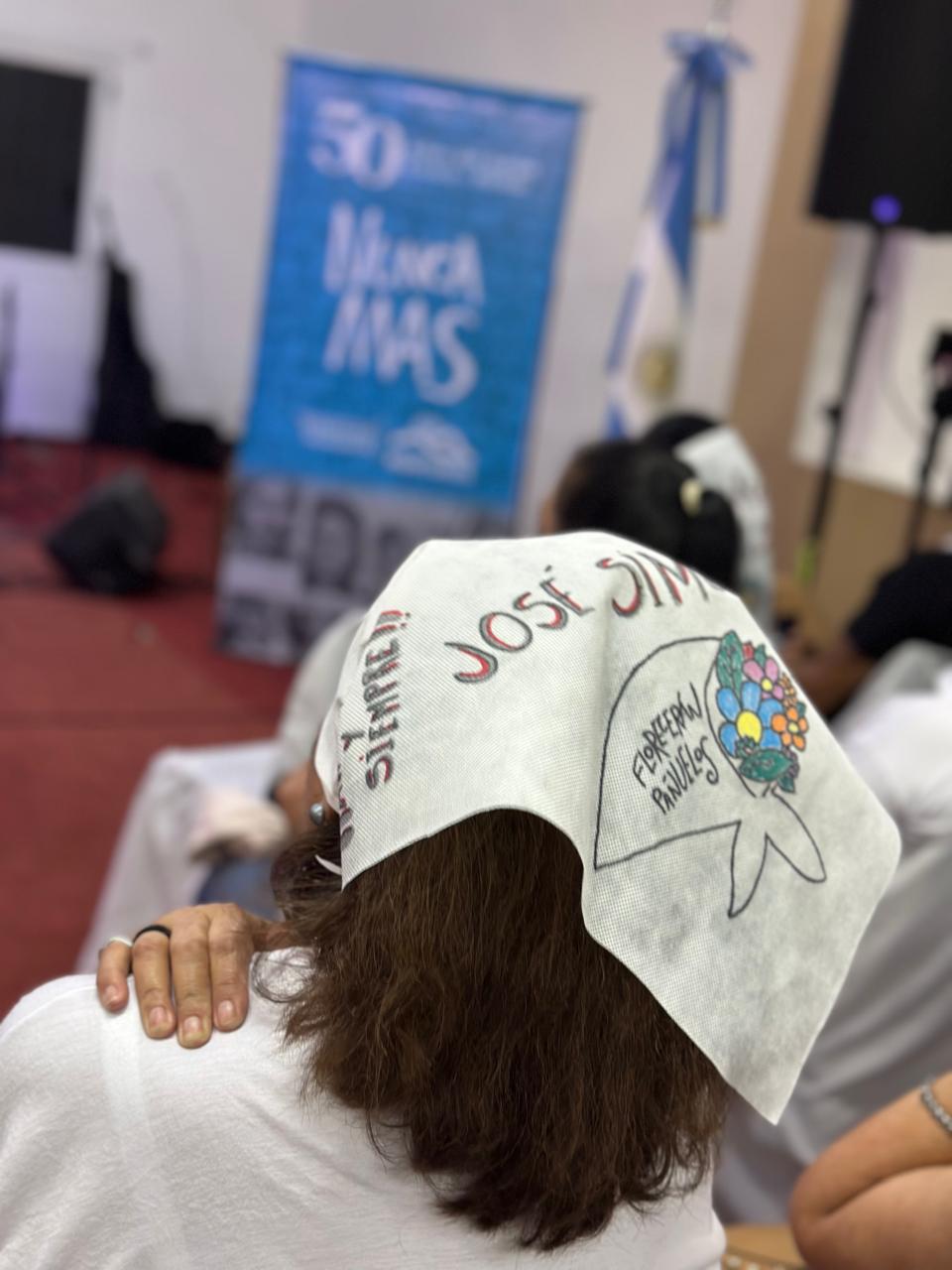 Las integrantes del grupo literario intervinieron pañuelos y los obsequiaron en la vigilia por el día de la Memoria, La Verdad y la Justicia