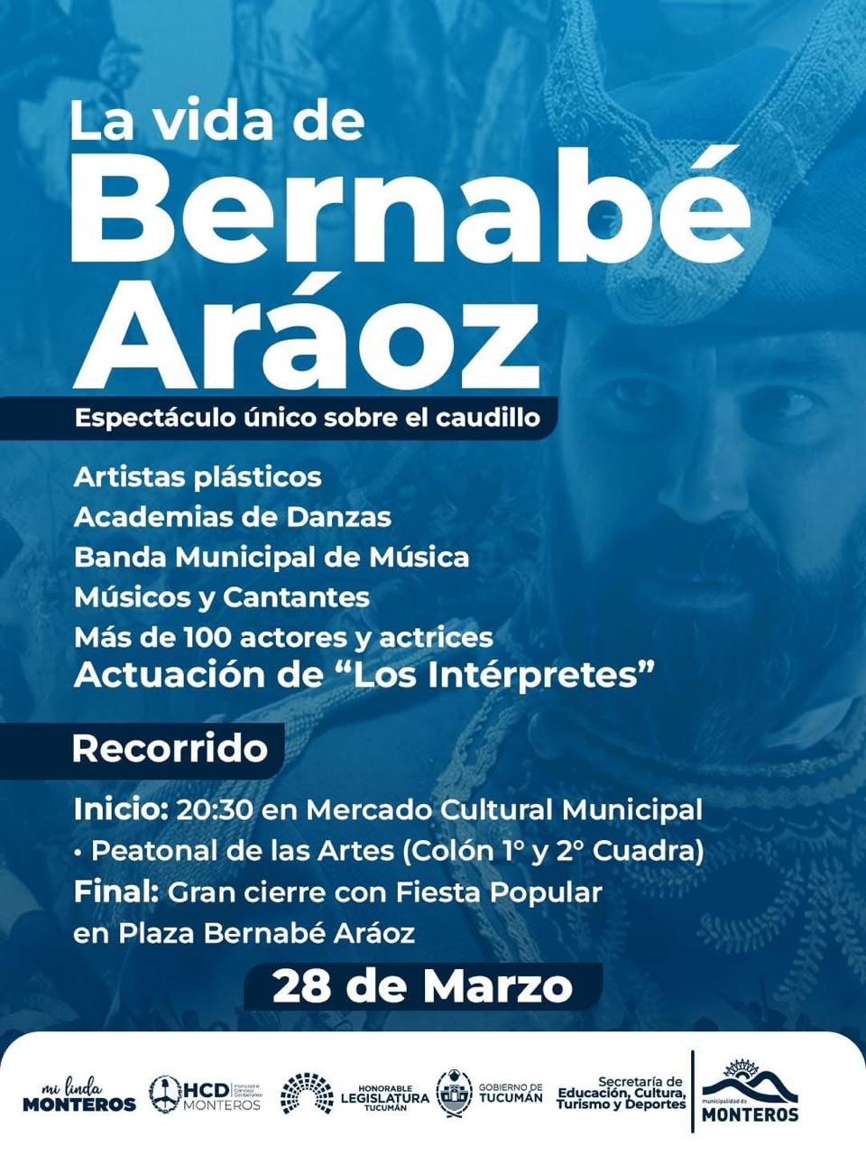 El próximo sábado 28 de marzo se honrará la memoria del Gral. Bernabé Aráoz, héroe monterizo. Se pondrá de manifiesto no solo recordar un nombre de la historia; sino celebrar al caudillo, al visionario y al hombre que, con coraje y determinación, forjó los cimientos de la identidad federal y defendió la libertad de nuestra Patria en momentos cruciales. Así lo definió el legislador Francisco Serra, que encabeza la organización las actividades.