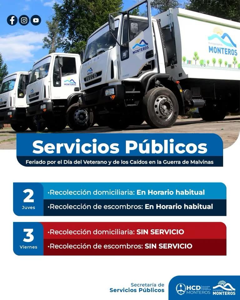 En otro orden, el operativo de recolección de residuos municipal, no pasará por su domicilio. Recién el día lunes 6 de abril, con sus horarios habituales de acuerdo a la zona barrial.