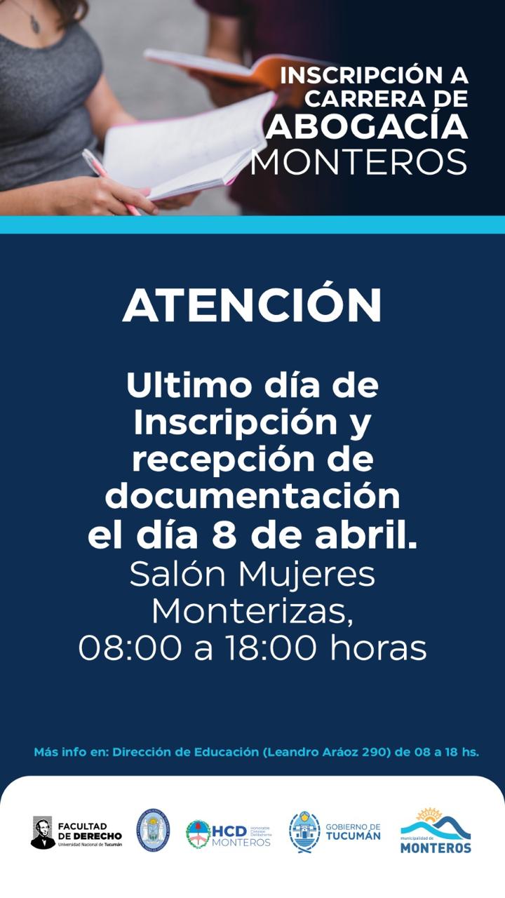 ABOGACÍA EN MONTEROS. ÚLTIMO DÍA PARA INSCRIBIRSE