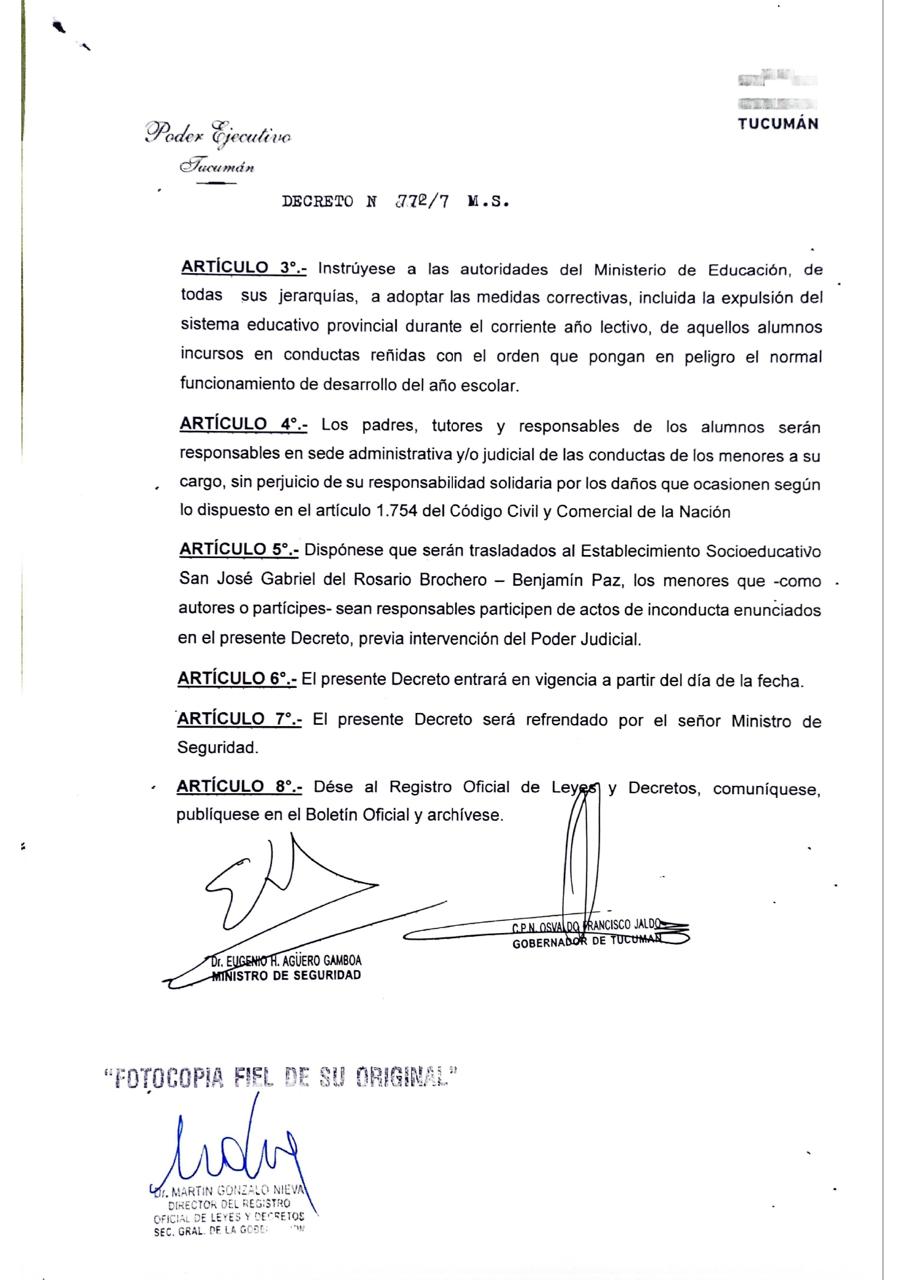 5. LOS CASOS GRAVES con menores van al Establecimiento Socioeducativo San José Gabriel del Rosario Brochero - Benjamín Paz, con intervención de un juez.