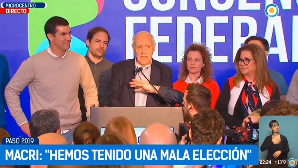Lavagna salió a la sala de prensa del bunker de su partido, en el hotel NH de San Telmo, a las 22.30 junto a su candidato a vicepresidente, Juan Manuel Urtubey, y su comando de campaña, y agradeció “a todos los argentinos por haber cumplido una jornada electoral con tranquilidad y en paz”.