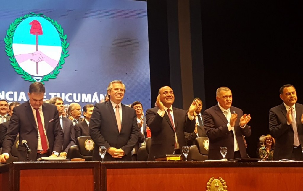 La ceremonio en la cual el Dr Juan Manzur asumio su segundo mandato como gobernador de la provincia de Tucumàn estuvo cargada de sorpresas por ejemplo la entrega del baston de mando al gobernador por parte de nuestro futuro presidente