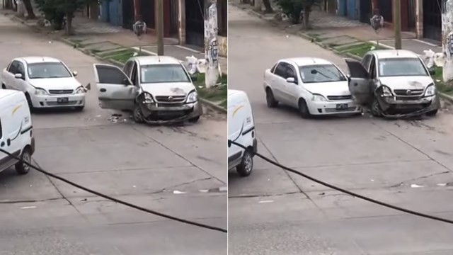 Pero lo mas terrible sucedio a la altura 2300 de la calle Santiago del Estero. (la agresión fue filmada por algunos testigos con sus teléfonos celulares que no podían creer lo que veían). Las imágenes muestran al conductor descontrolado, colisionando una y otra vez contra el auto de la joven, destrozando la puerta y casi todo el lado izquierdo del vehículo.